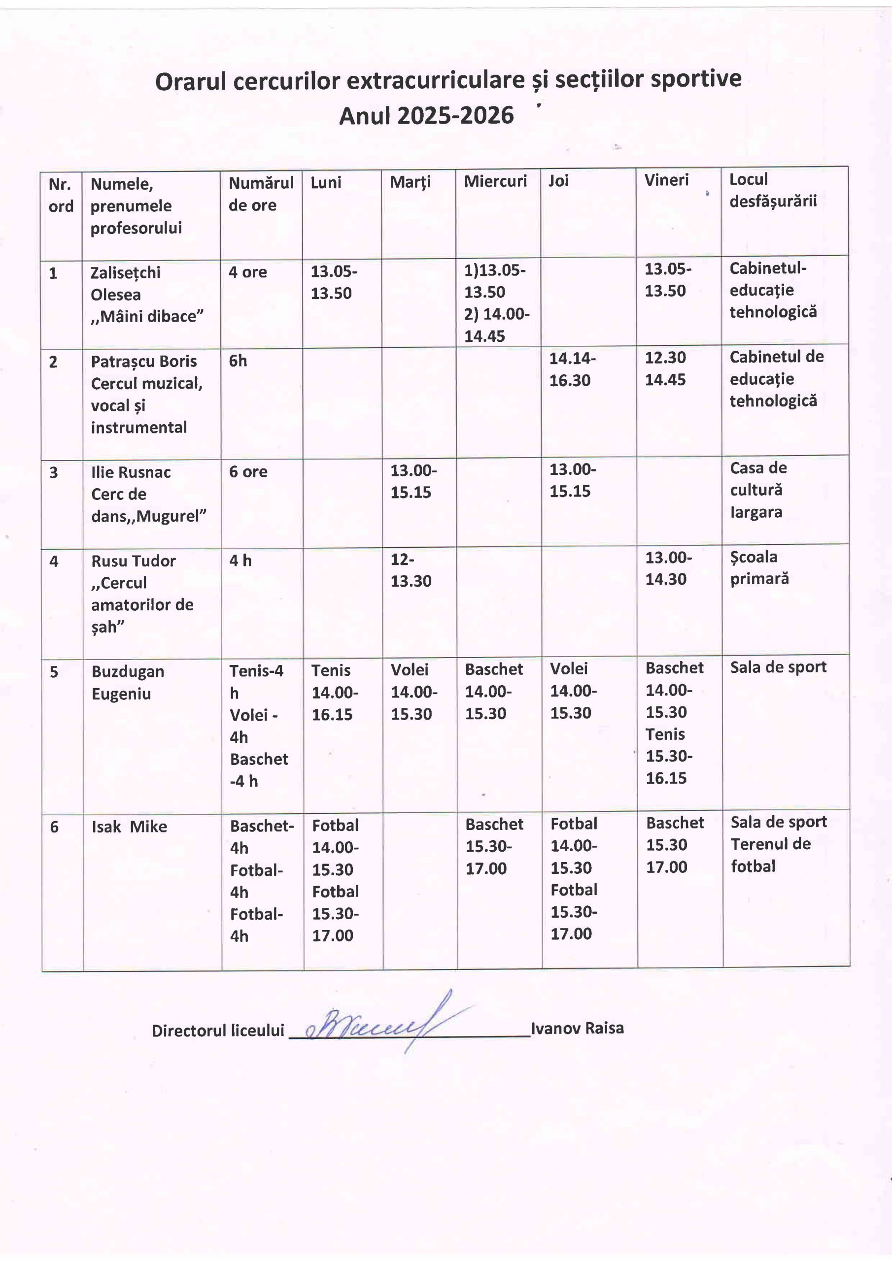 Administrația liceului